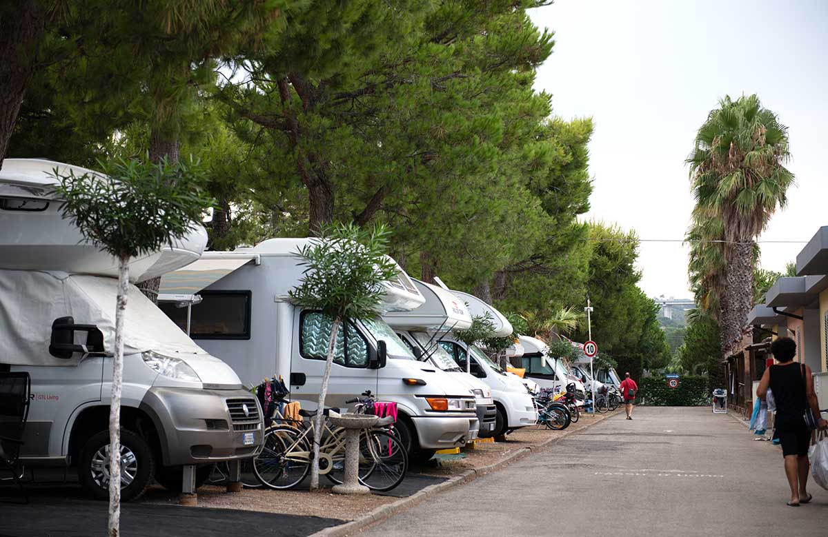 Piazzole esclusivamente CAMPER (con WC a casetta) con Acqua e Scarico. Le nostre piazzole hanno una grandezza di 6x8 mt, di cui alcune ombreggiate da pini altre da palme washington ed inoltre disponiamo di n. 10 Piazzole Doppie 6x16 mt (96 mq) con ombreggiatura di pini e pioppi.