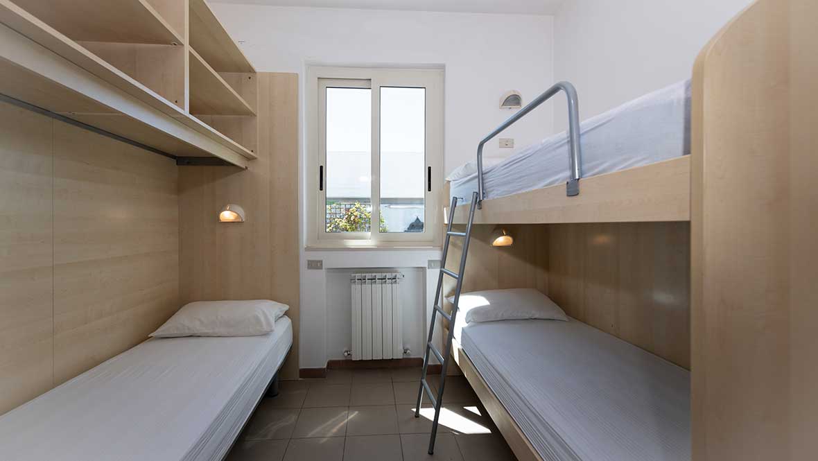 In brick, 40 square meters, with two rooms, with double bed, 1 single bed and 1 bunk bed for 5 people,